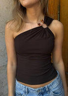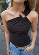 Alissa One Shoulder Top i bomuld med perledetaljer