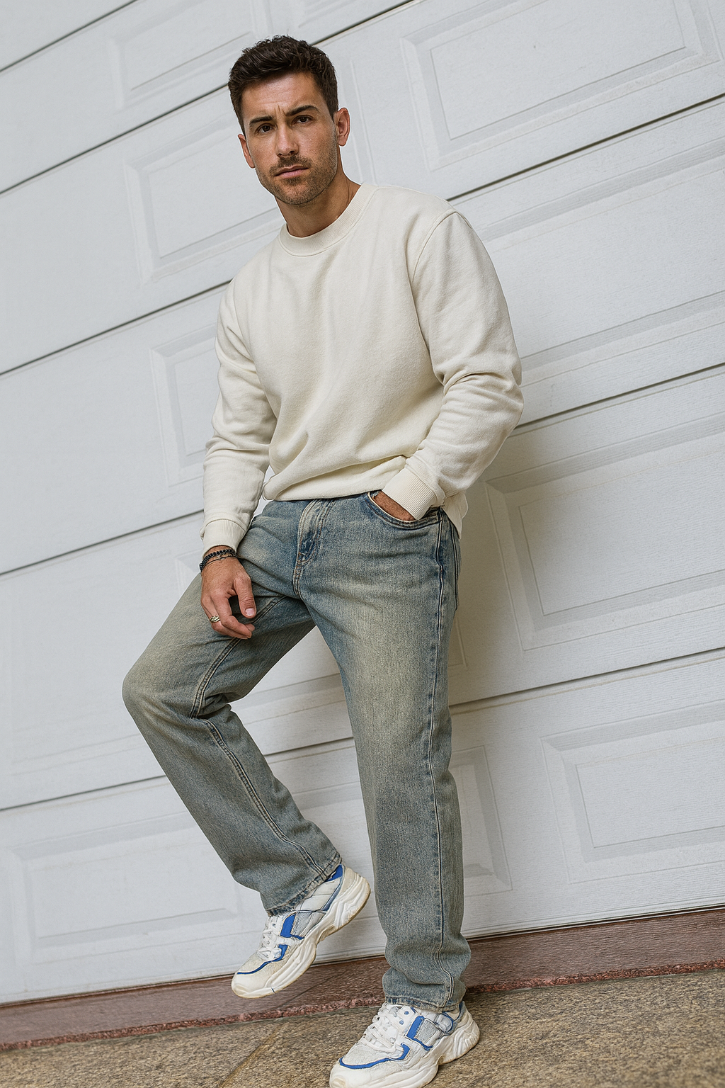 Herrejeans med løs pasform og vasket denimfinish. Modellen har en bred silhuet og rummelige proportioner, fremstillet i behandlet denim med baggy-inspirerede detaljer.Specifikationer: