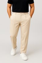 Bukser med bredt bensnit og frontlæg, fremstillet i let materiale med naturligt fald. Modellen har komfortabel linning med diskret lukning og giver bevægelsesfrihed i hverdagen.