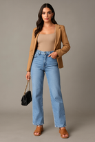 Materiale: Denim med synlige sømme og lysere vask
