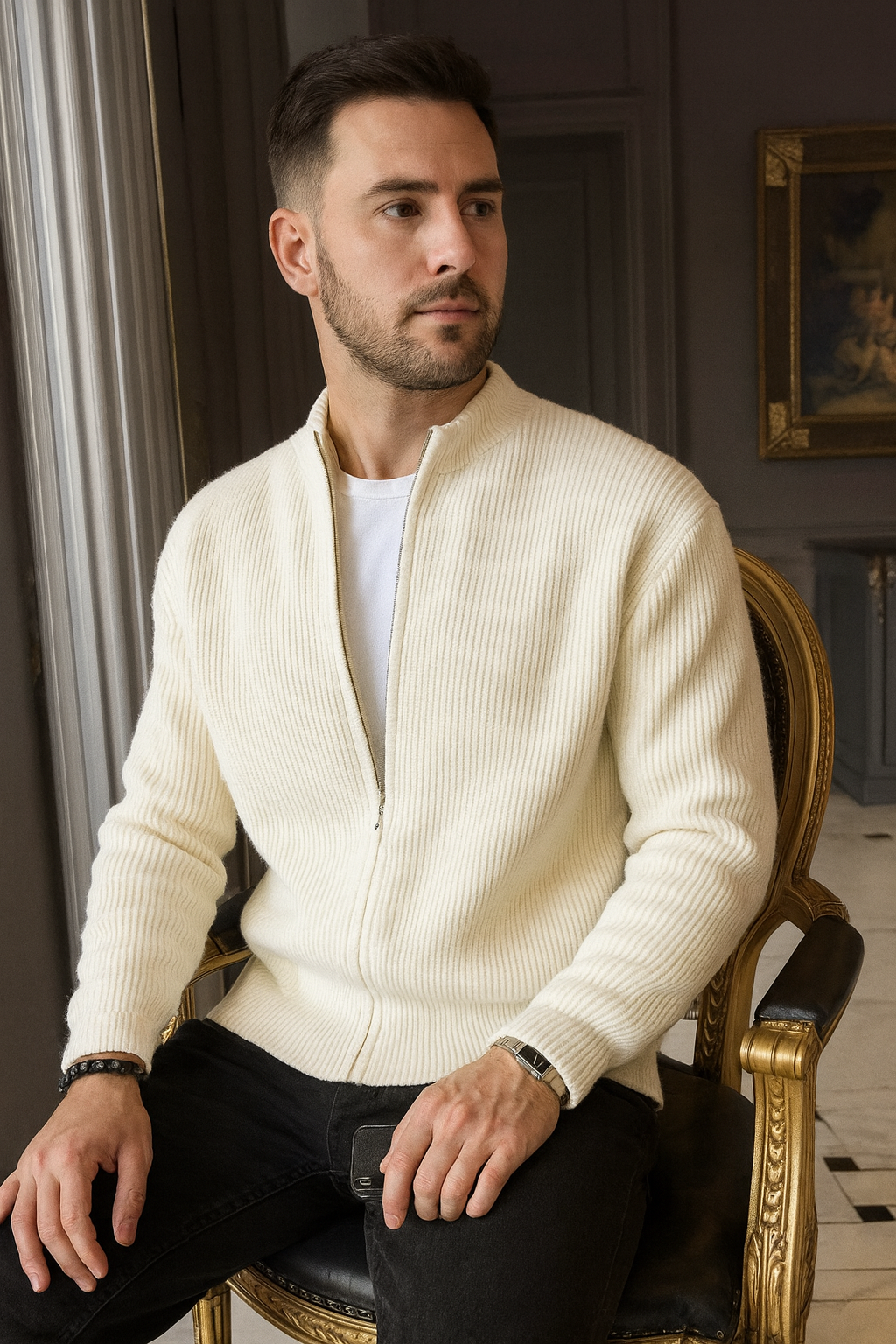 Herre Striktoppe Kraveløs | Lynlås Ribstrik