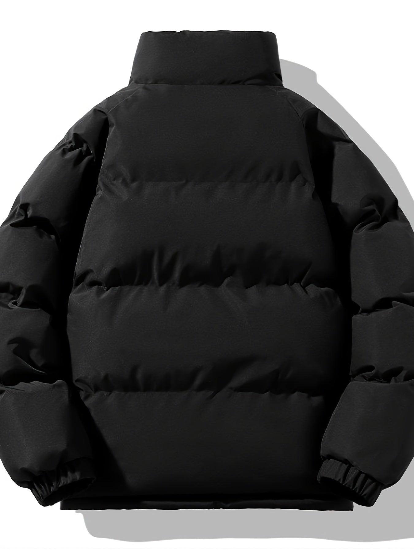 En vinterjakke til mænd med foret inderfor og pufferdesign. Jakken har en gennemgående lynlås og praktiske lommer, som gør den funktionel til daglig brug.