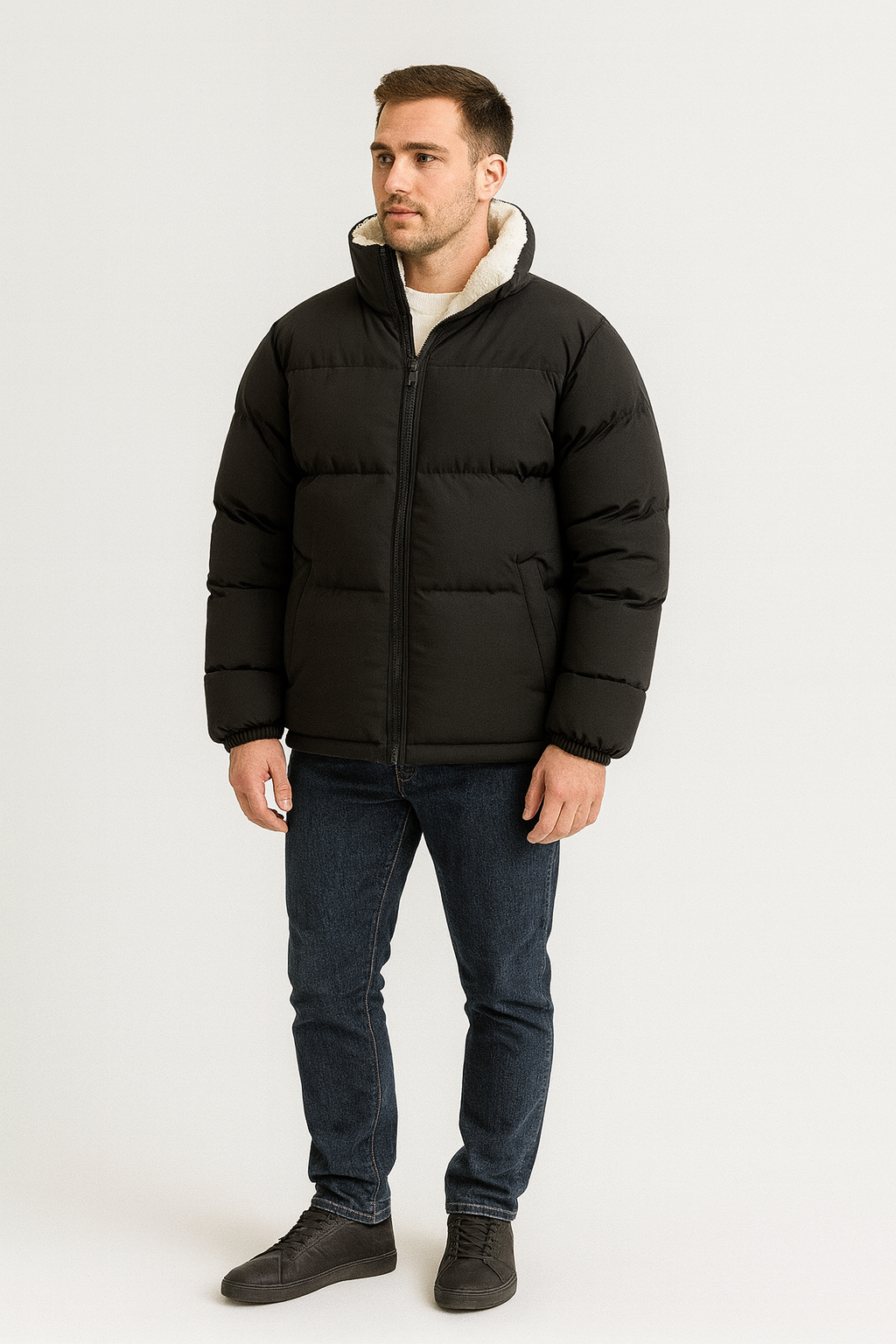 Herre vinter pufferjakke med foret inderfor og lynlås