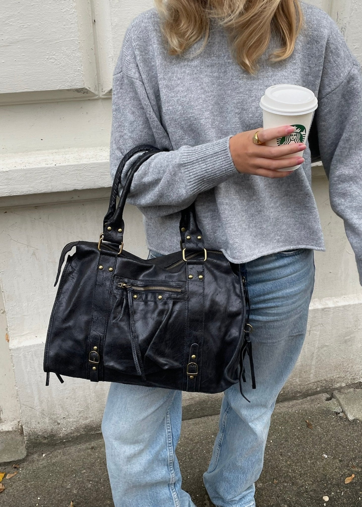 Paris skuldertaske i læder med håndtag og rem